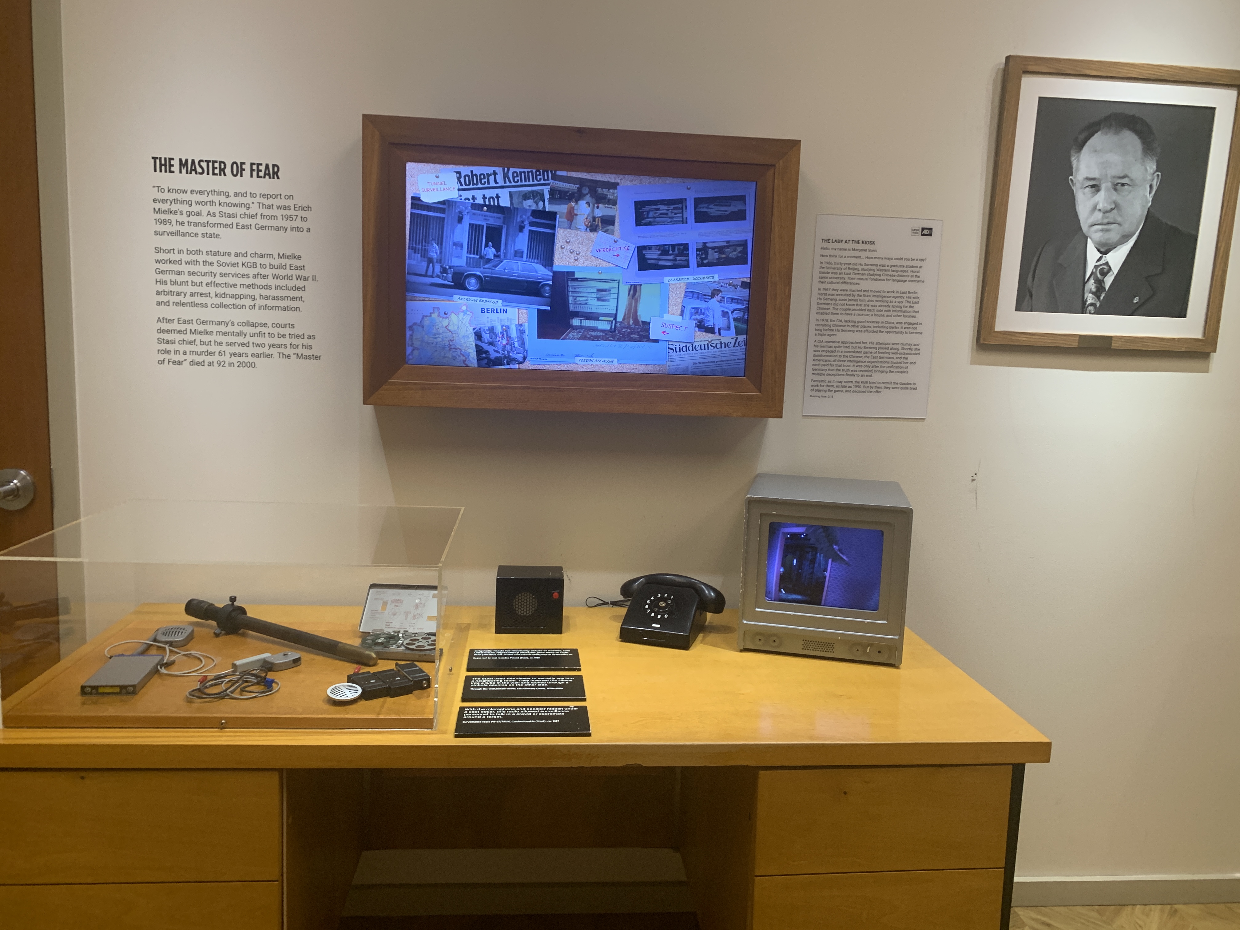 “Covert Action” detailed the techniques that have been used to influence events. This area highlighted both successful and unsuccessful covert operations. “Spying That Shaped History” looks at spying during the American Revolution and World War II, as well as the new realm of cyber spying and attacks. The final exhibit “An Uncertain World” looks at spies who operated as double agents, the role of spying in the war on terrorism, spying in East Berlin during the Cold War, and stories of spies stealing economic secrets throughout time.